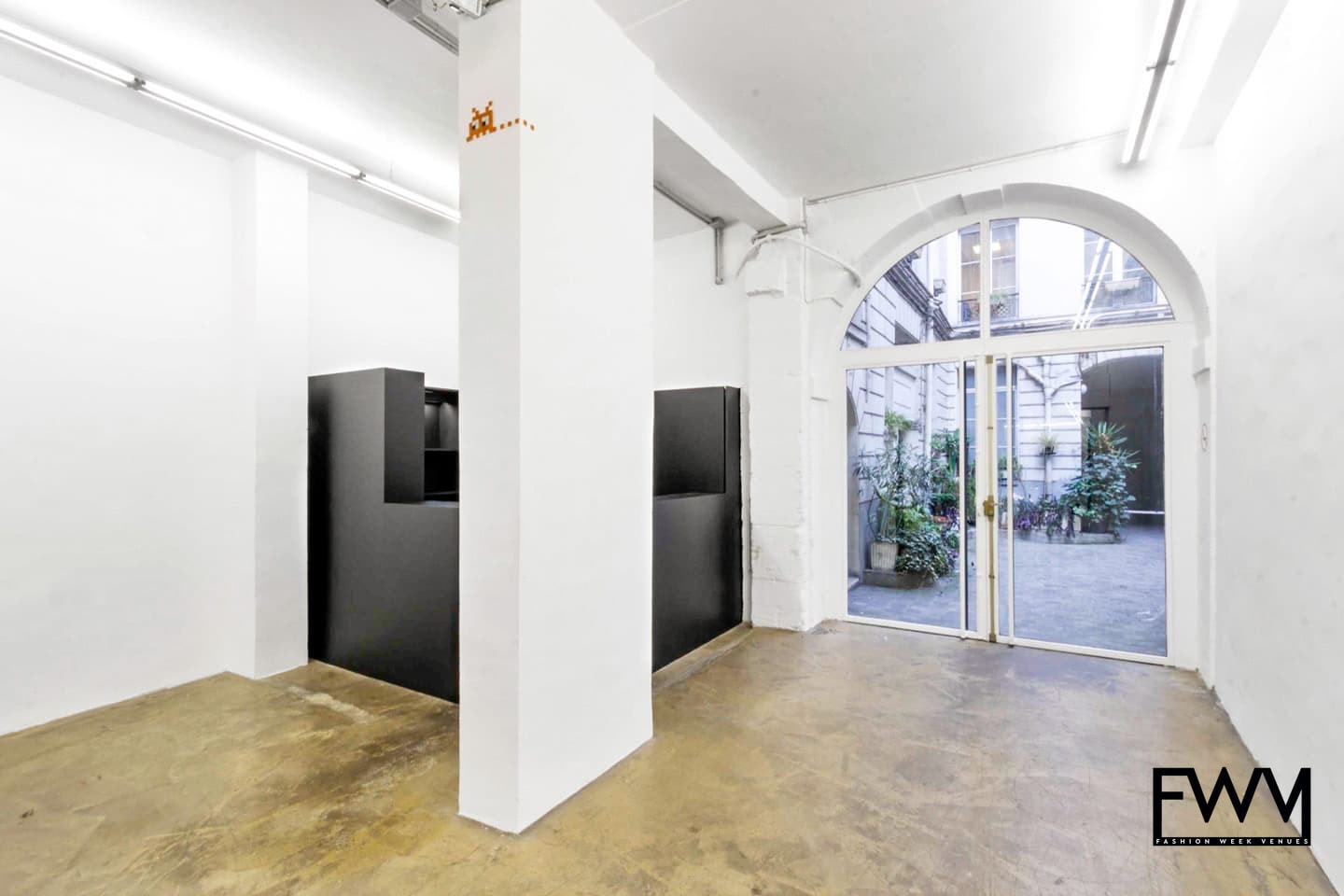 • Art Gallery, Event Space, Fashion Week Showroom, Industrial Space, Minimal Space, Pop Up Shop, Spaces with Ground Floor Backyard, Venues with Concrete Floor