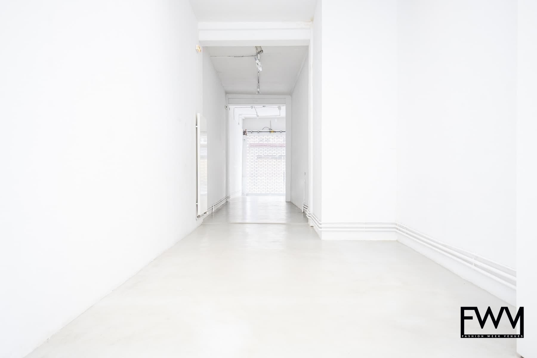 The unique 75 square meter gallery space is perfect for a variety of events including art exhibitions, corporate conferences, fashion shows, private sales, food events, and product launches. Its elongated design and soaring ceilings create an inviting atmosphere, making it an ideal location for any sophisticated gathering. Additionally, it accommodates photo shoots, filming, and pop-up retail, making it versatile for B2B uses.