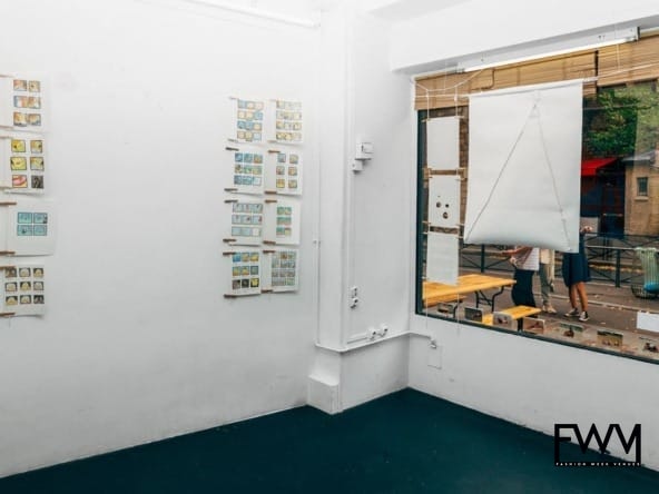 The gallery features an inviting glass facade, enhancing its modern aesthetic and drawing visitors in to explore the unique offerings inside. Designed with flexibility in mind, the space comes equipped with adaptable picture walls that can be configured to meet the specific needs of artists and exhibitors alike. Additionally, an equipped back kitchen and restroom facilities ensure convenience for both staff and guests.
