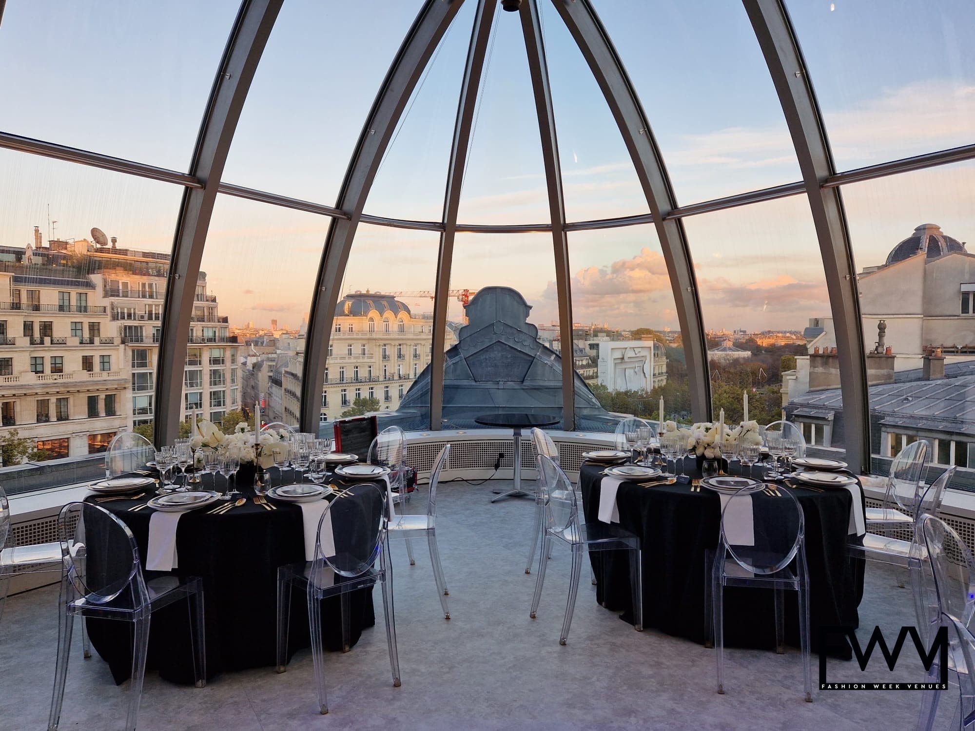 With its unique rooftop setting offering 180-degree views of iconic landmarks like the Eiffel Tower and the Arc de Triomphe, this venue provides the perfect backdrop for fashion shows during Paris Fashion Week. The elegant ambiance combined with ample natural light enhances the visual appeal, making it an attractive choice for designers and brands looking to make a statement.