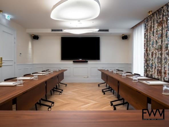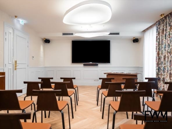 The venue is fully equipped with modern furniture, high-speed internet, climate control (including air conditioning and heating), and state-of-the-art audiovisual equipment. This ensures that your meetings and presentations run smoothly while providing a comfortable environment for your guests.