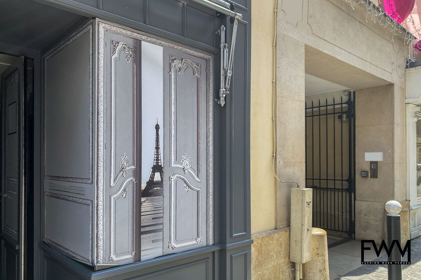 The pop-up boutique is located in the vibrant 2nd arrondissement of Paris, which is known for its dynamic shopping environment and proximity to popular landmarks like Forum des Halles and Etienne Marcel. This area boasts high foot traffic and is surrounded by prestigious retailers, providing an ideal setting for businesses looking to attract customers and enhance visibility during events like Paris Fashion Week.