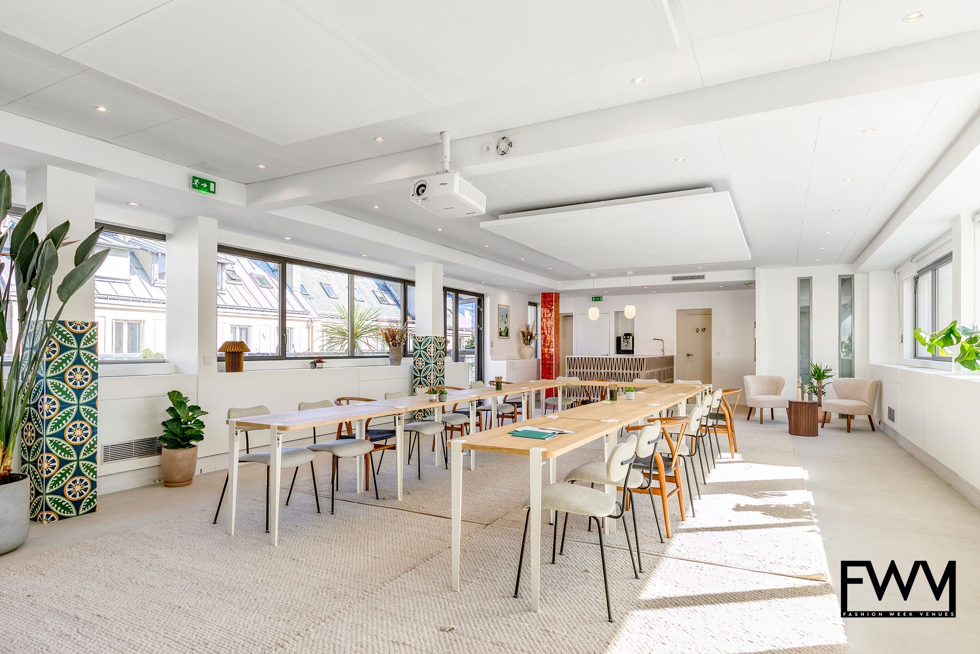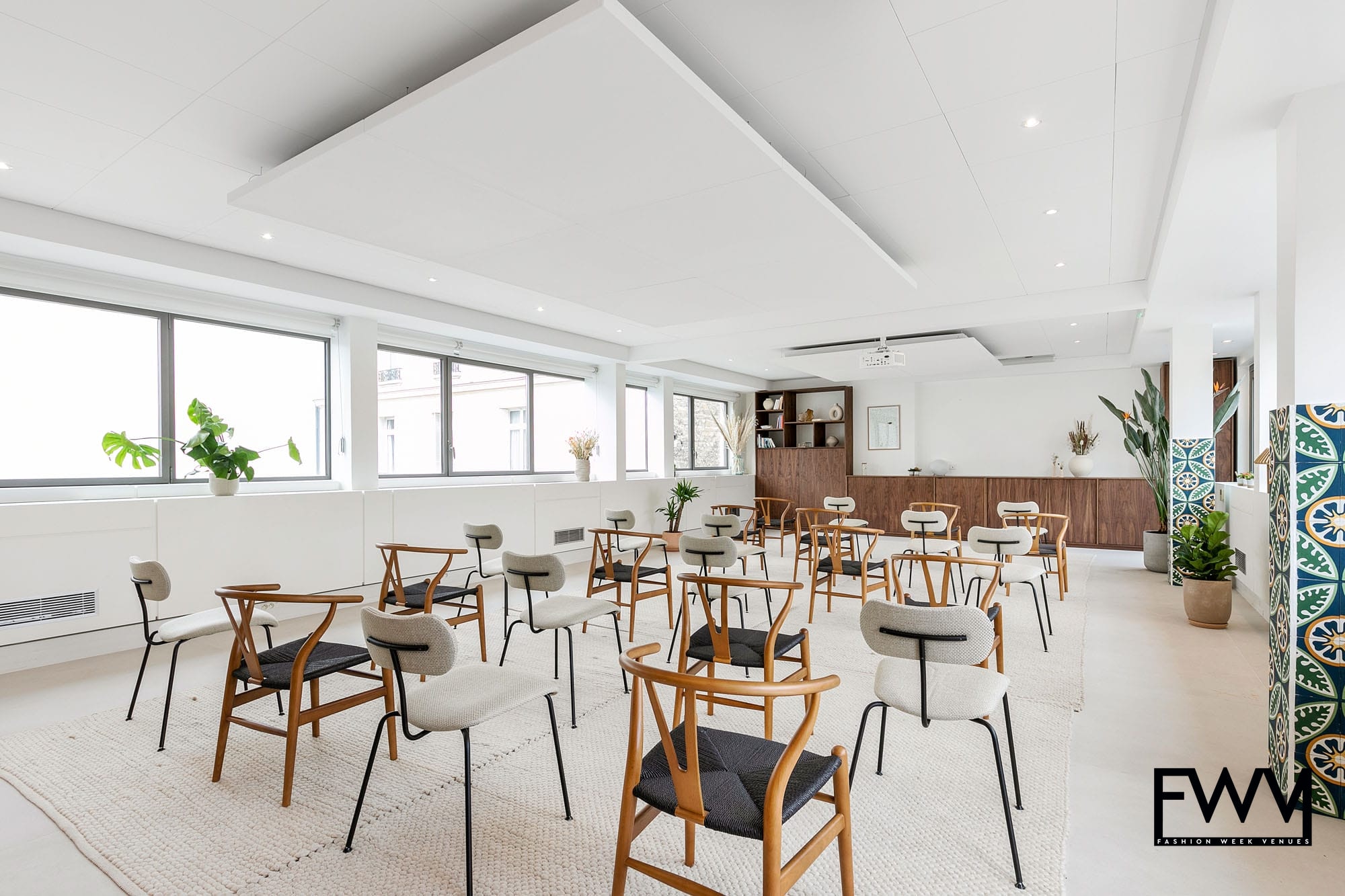 This venue is perfect for a wide variety of events including corporate seminars, workshops, exhibitions, and creative photo shoots. Additionally, it is an ideal location for Paris Fashion Week activities, pop-up retail events, art exhibitions, and networking gatherings. Its versatile design ensures that it can accommodate different arrangements and setups based on your specific needs.