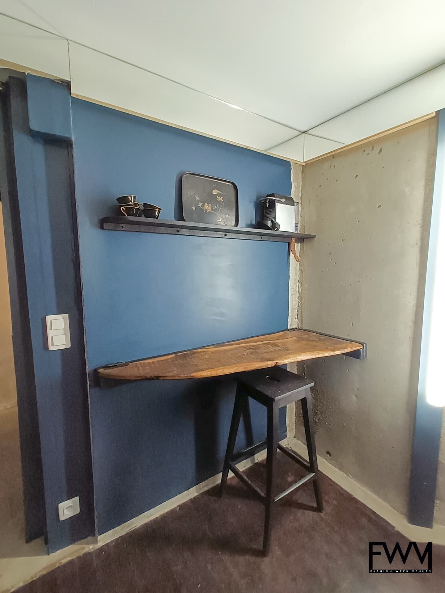 The layout is thoughtfully designed, featuring distinct areas that cater to different functions. The first room, overlooking the street, is ideal for photography shoots and exhibitions, while a spacious corridor equipped with styling options is perfect for culinary shots. The ambiance continues into a second room that combines a cozy living area with an office space and a well-equipped kitchen, ensuring convenience and comfort for you and your guests. Additionally, a clean and stylish bathroom completes the setup, enhancing the functionality of this versatile space.